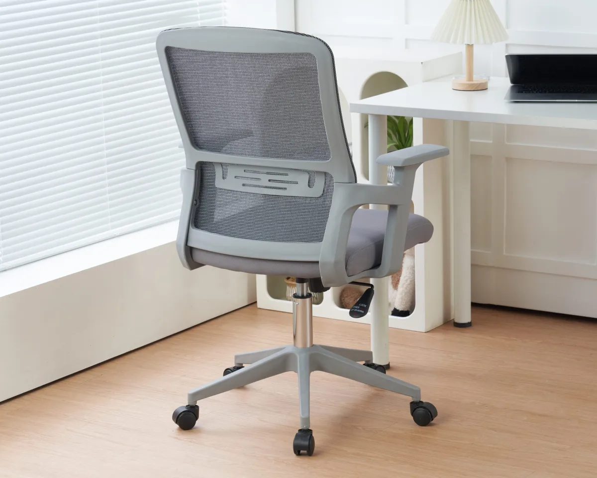 הגב עשוי מבד רשת גמיש ואוורירי, המעניק תמיכה מצוינת לגב התחתון ומסייע במניעת חימום והזעה במהלך ישיבה ארוכה. המושב מרופד בספוג איכותי, שמפחית את העומס על הגוף ומספק נוחות רבה גם בעת ישיבה ממושכת.