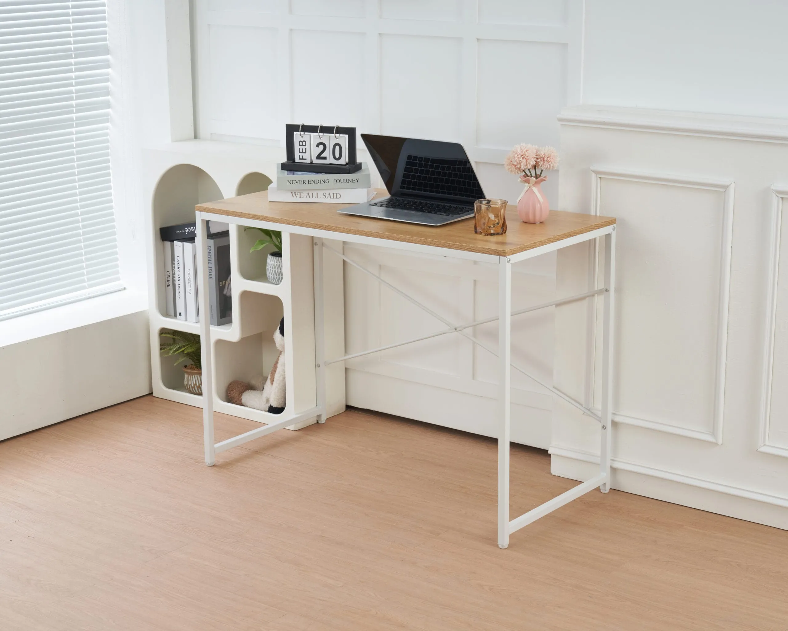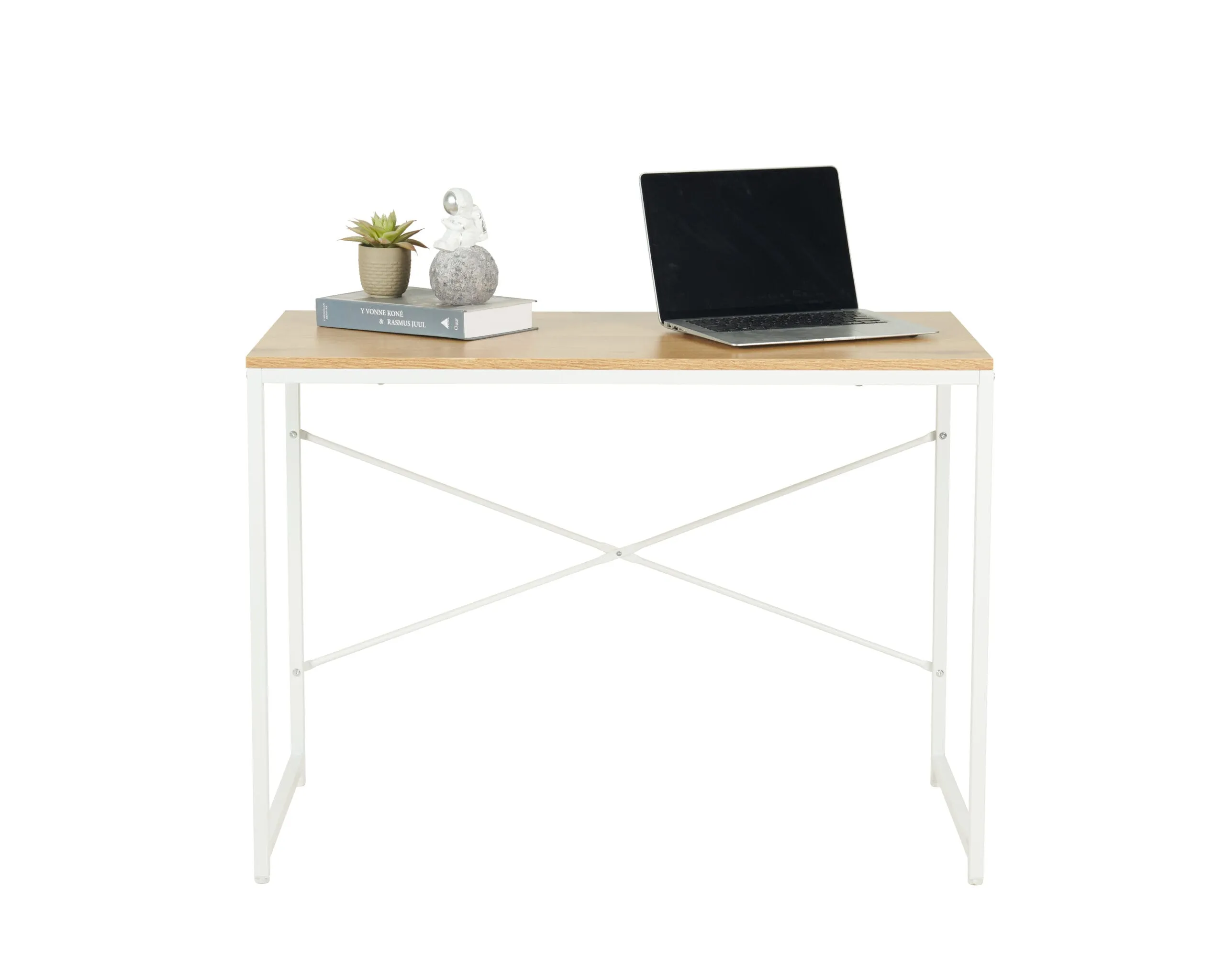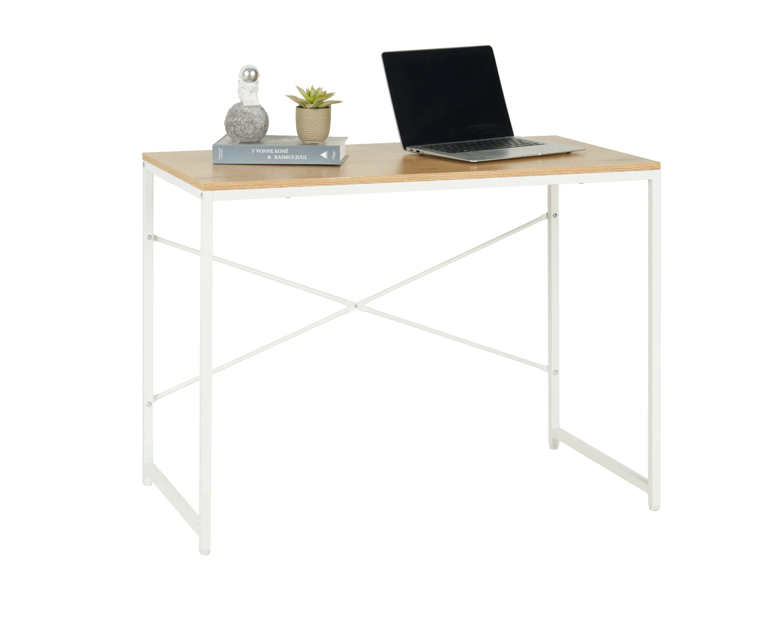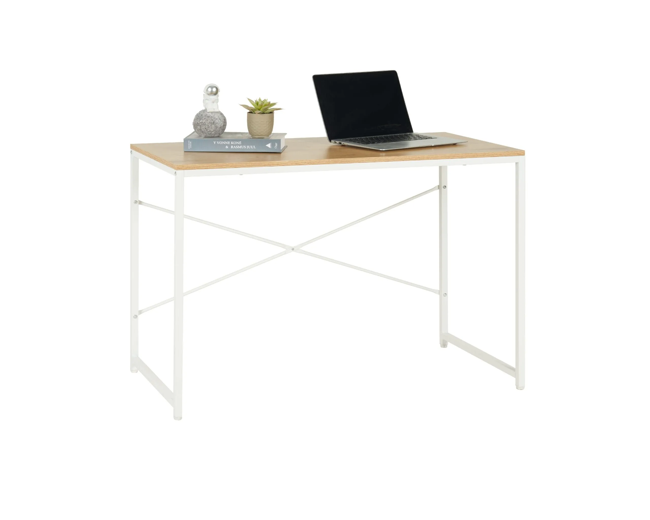 שולחן כתיבה מעוצב דגם 1202 בצבע עץ עם רגליים בצבע לבן