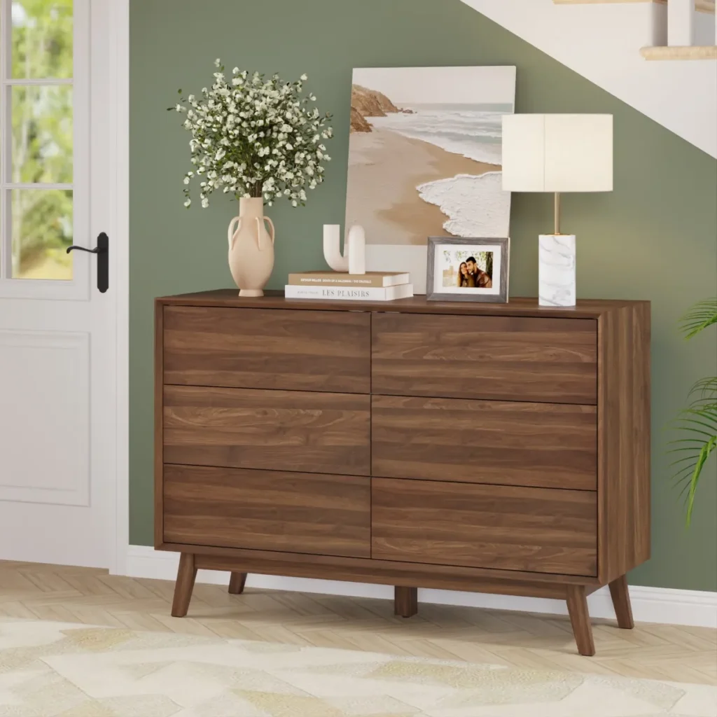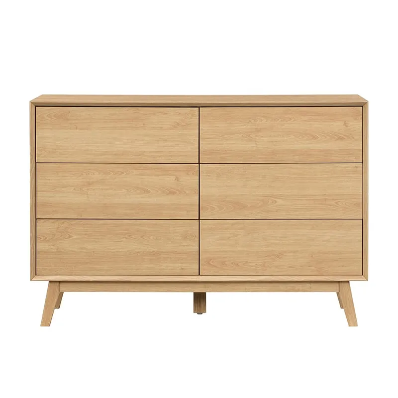 שידת 6 מגירות מעוצבת בגימור עץ אלון טבעי