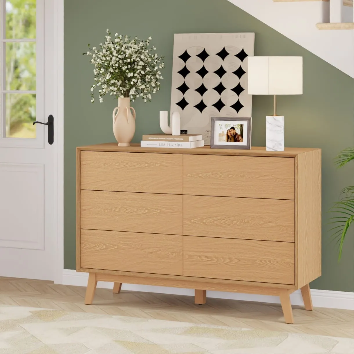 - קומודה מעוצבת בצבע עץ אלון טבעי – מראה חמים, מודרני וכפרי כאחד.