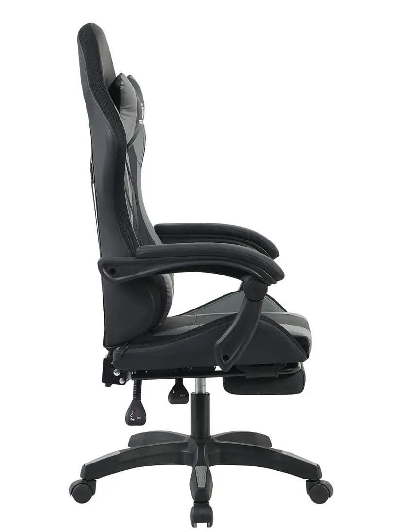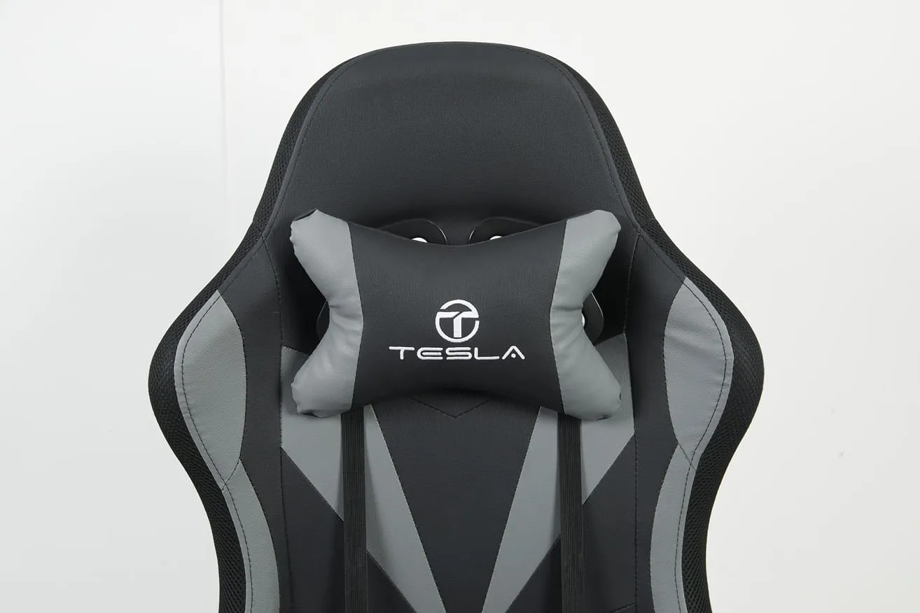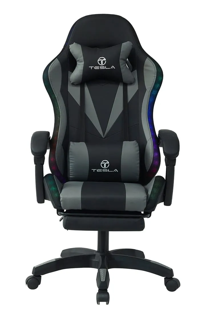 כיסא גיימינג כולל תאורת LED וכרית עיסוי חשמלית והדום נפתח לרגליים Tesla דגם 7031 בצבע אפור