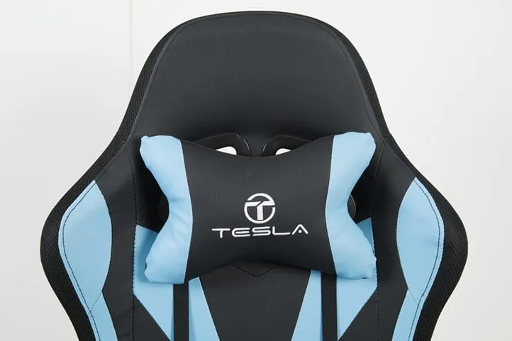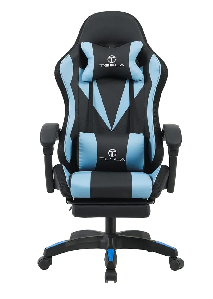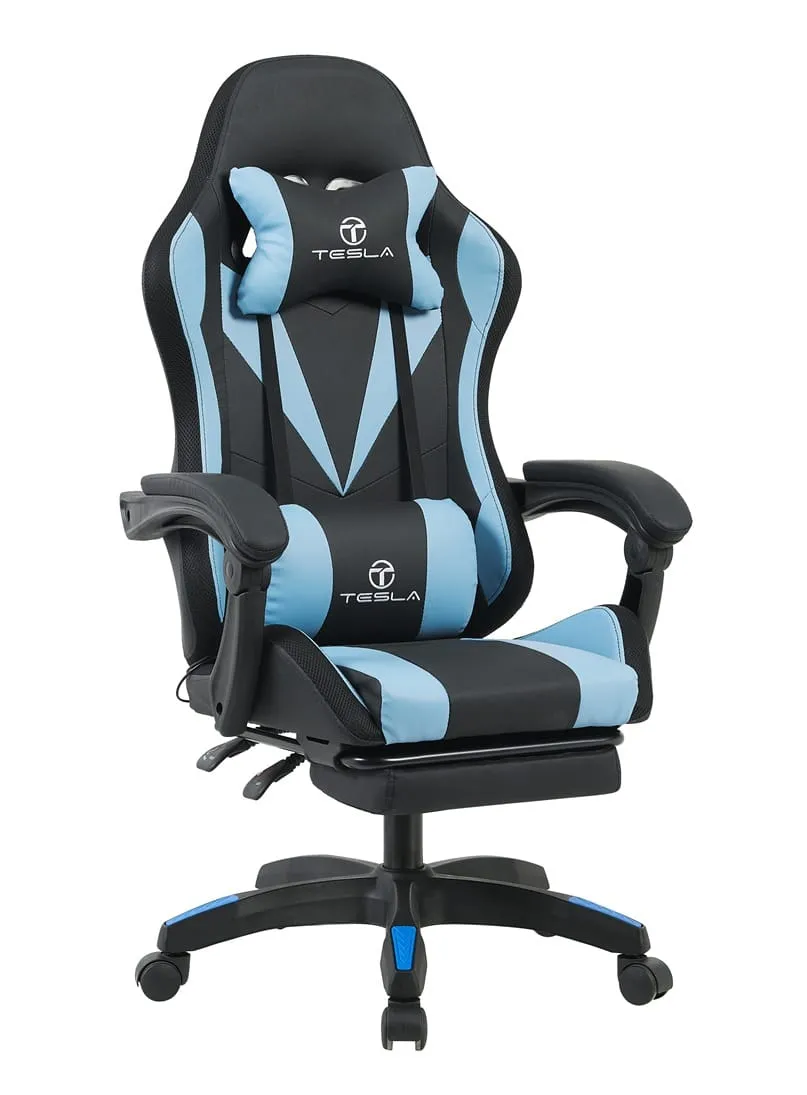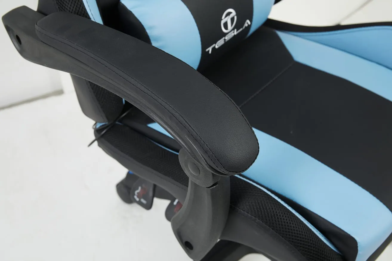 כיסא גיימינג כולל תאורת LED וכרית עיסוי חשמלית והדום נפתח לרגליים Tesla דגם 7031 בצבע כחול