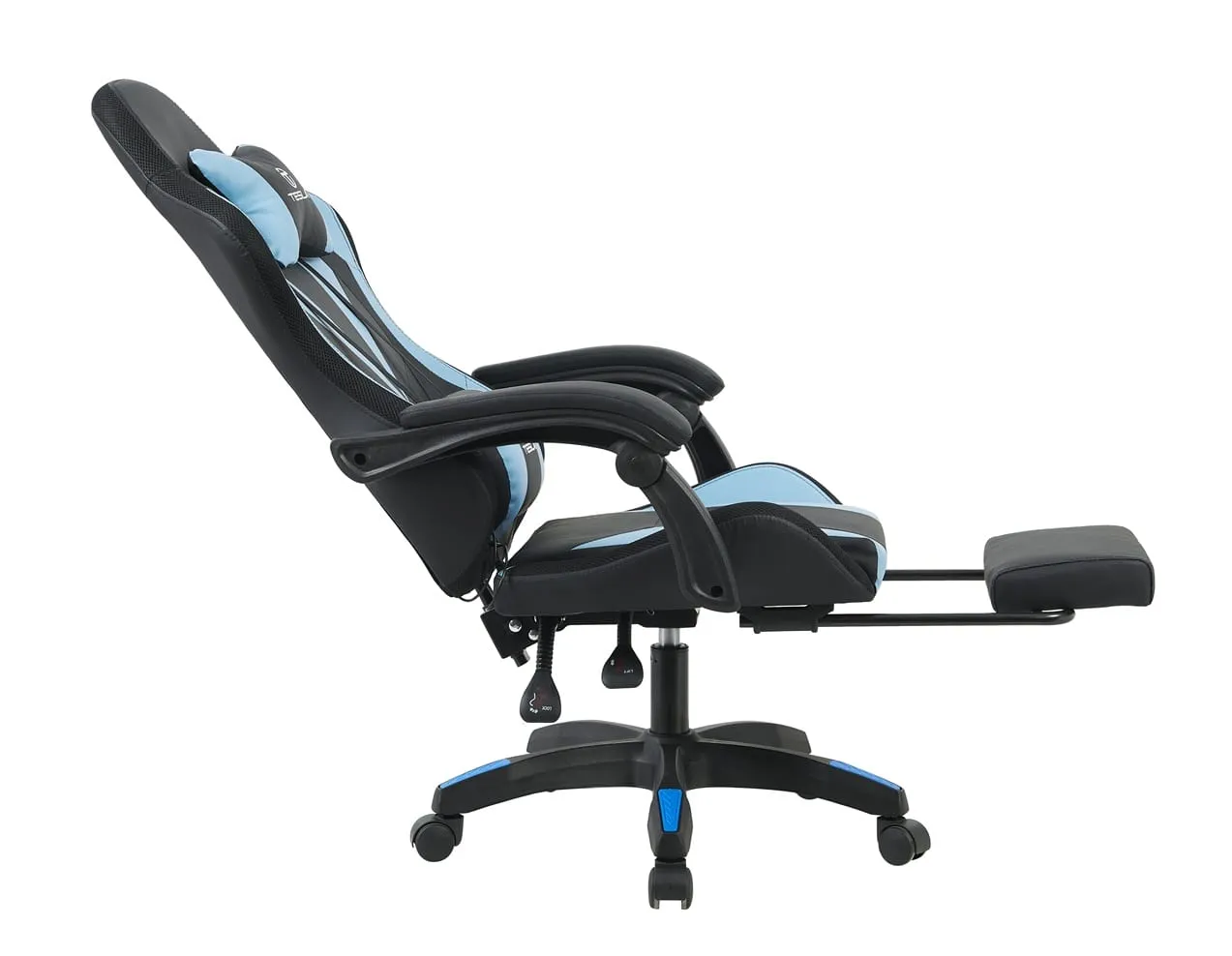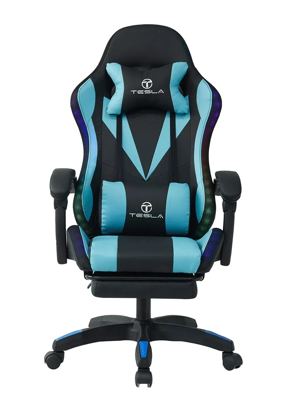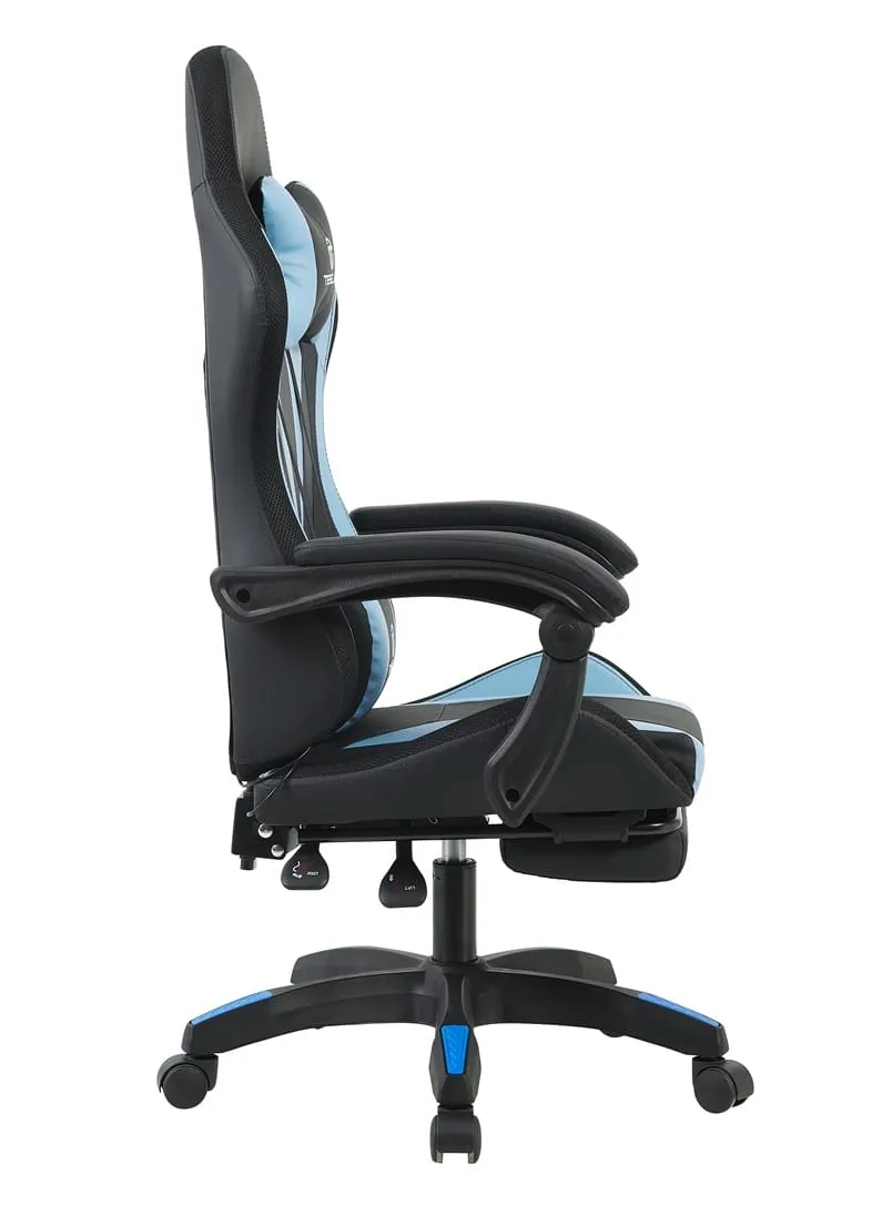 כיסא גיימינג כולל תאורת LED וכרית עיסוי חשמלית והדום נפתח לרגליים Tesla דגם 7031 בצבע כחול