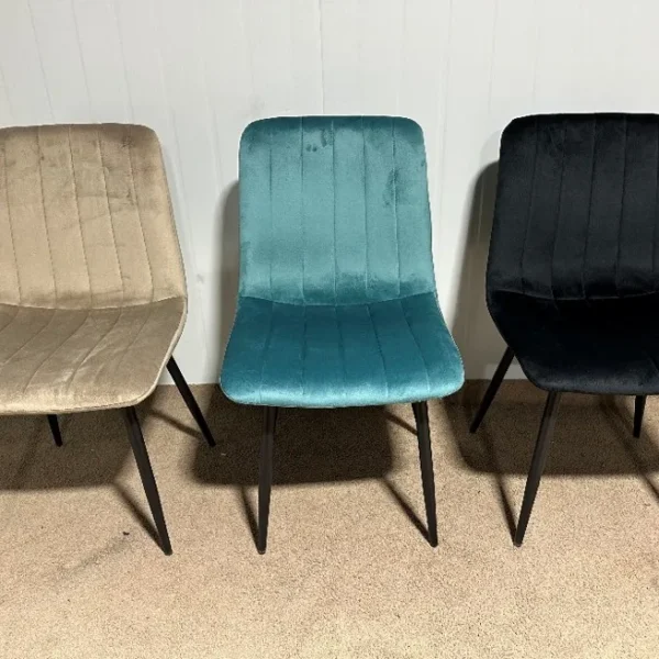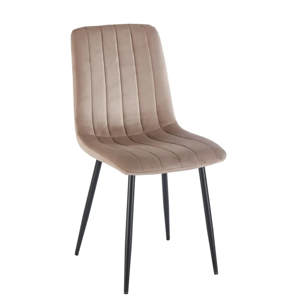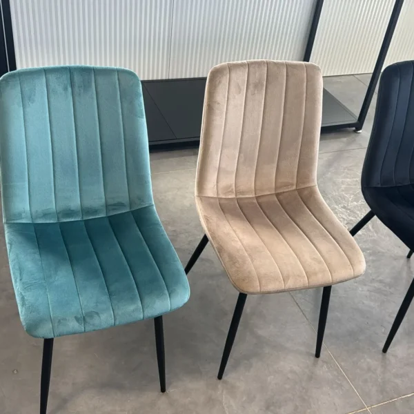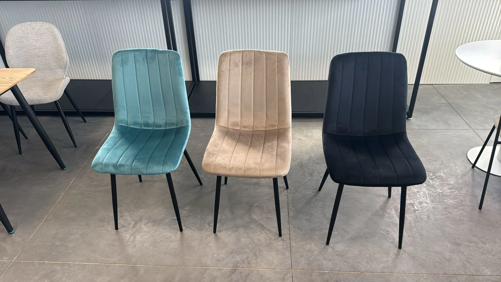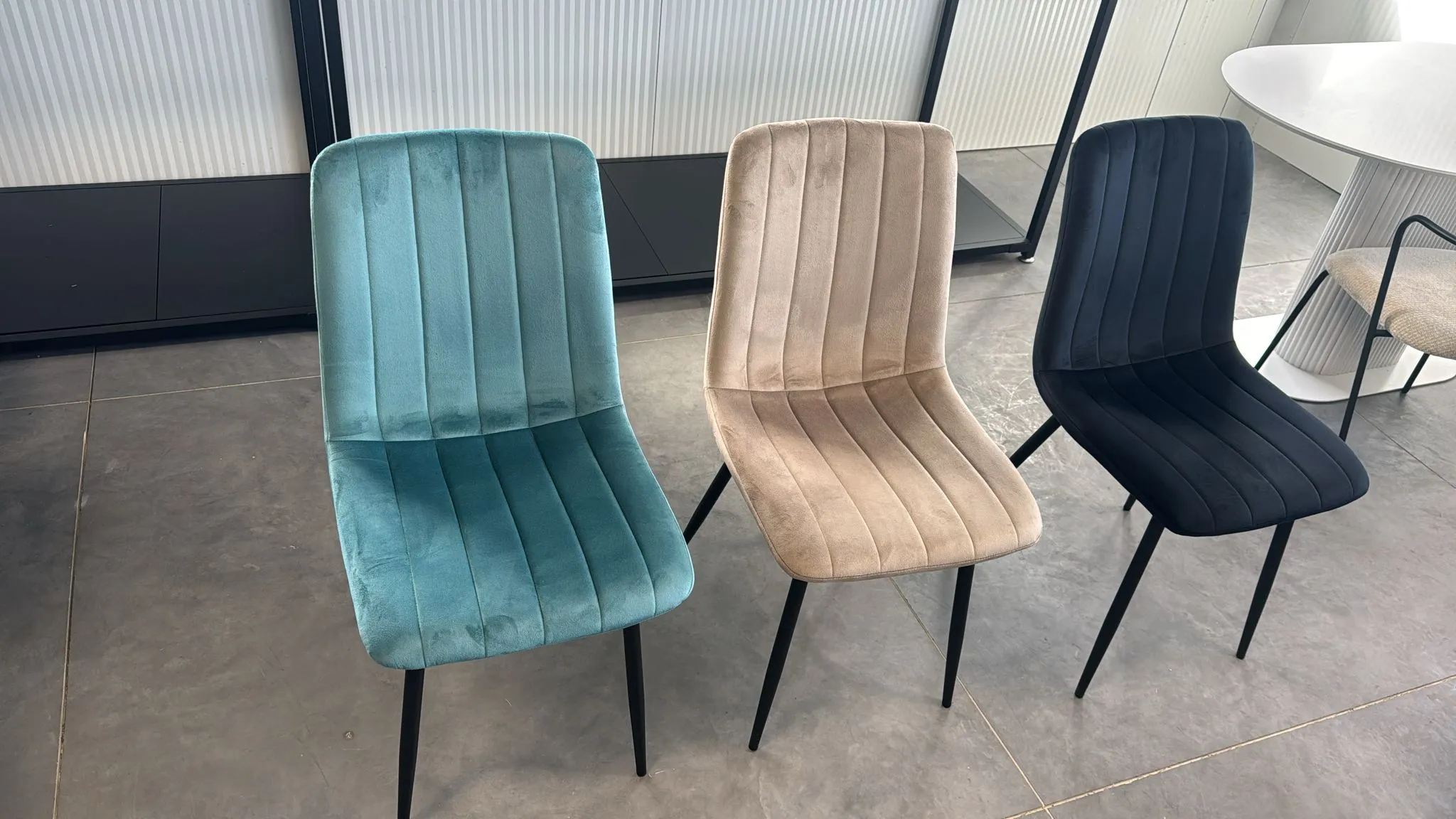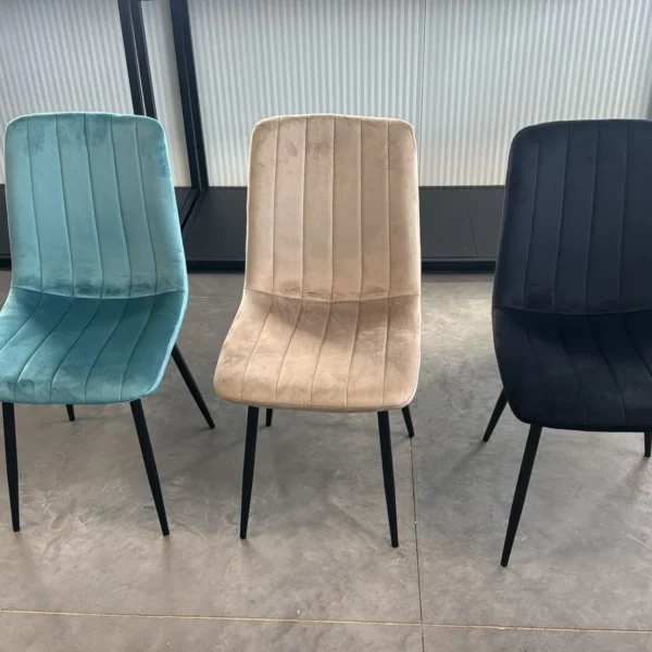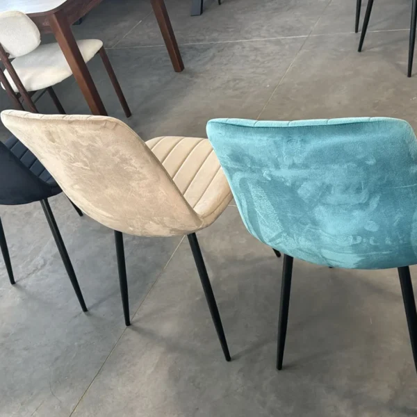 המושב המרופד עשוי בד קטיפה איכותי המתנקה בקלות, מה שהופך אותו לפרקטי במיוחד בבתים עם ילדים, בסביבת אירוח פעילה או בעסקים הדורשים תחזוקה יעילה. המרקם הקטיפתי מוסיף עומק ויוקרה למראה הכללי ומעניק תחושת נוחות מיידית בעת הישיבה. הריפוד האיכותי והמבנה המאוזן של המושב מאפשרים ישיבה נוחה לאורך זמן – אידיאלי לארוחות משפחתיות, אירוחים, עבודה מזדמנת או שיחות ערב.