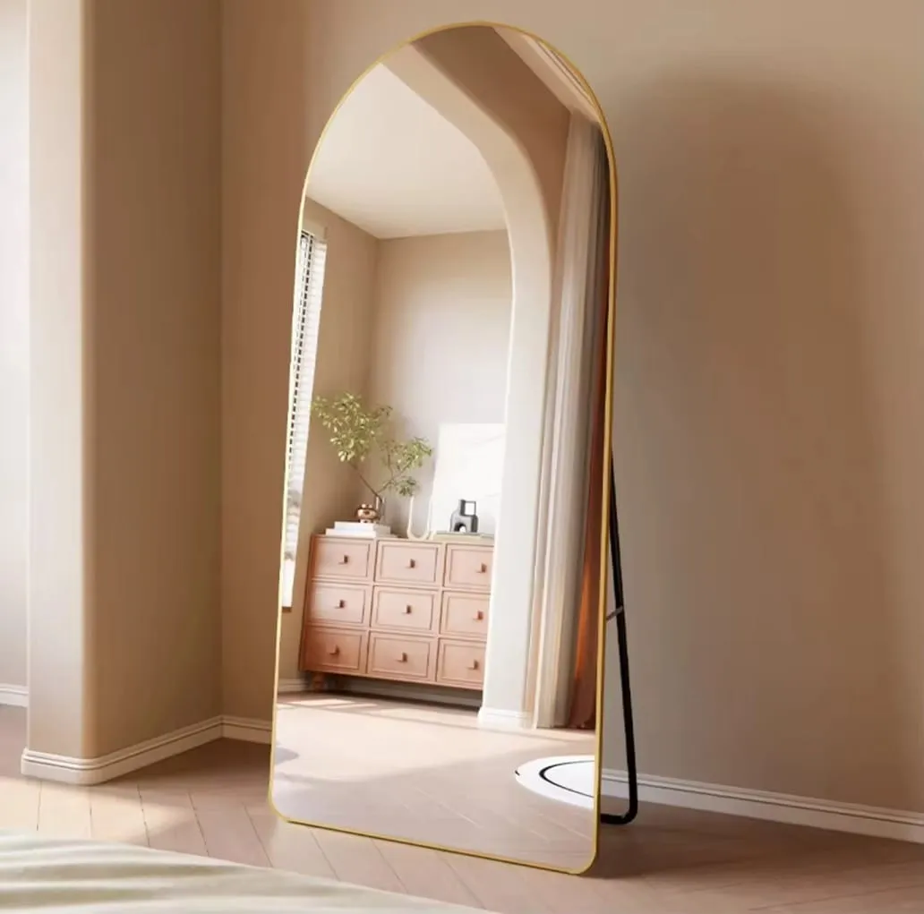מראת גוף חצי אובלית עומדת/נתלת בצבע זהב דגם 9006