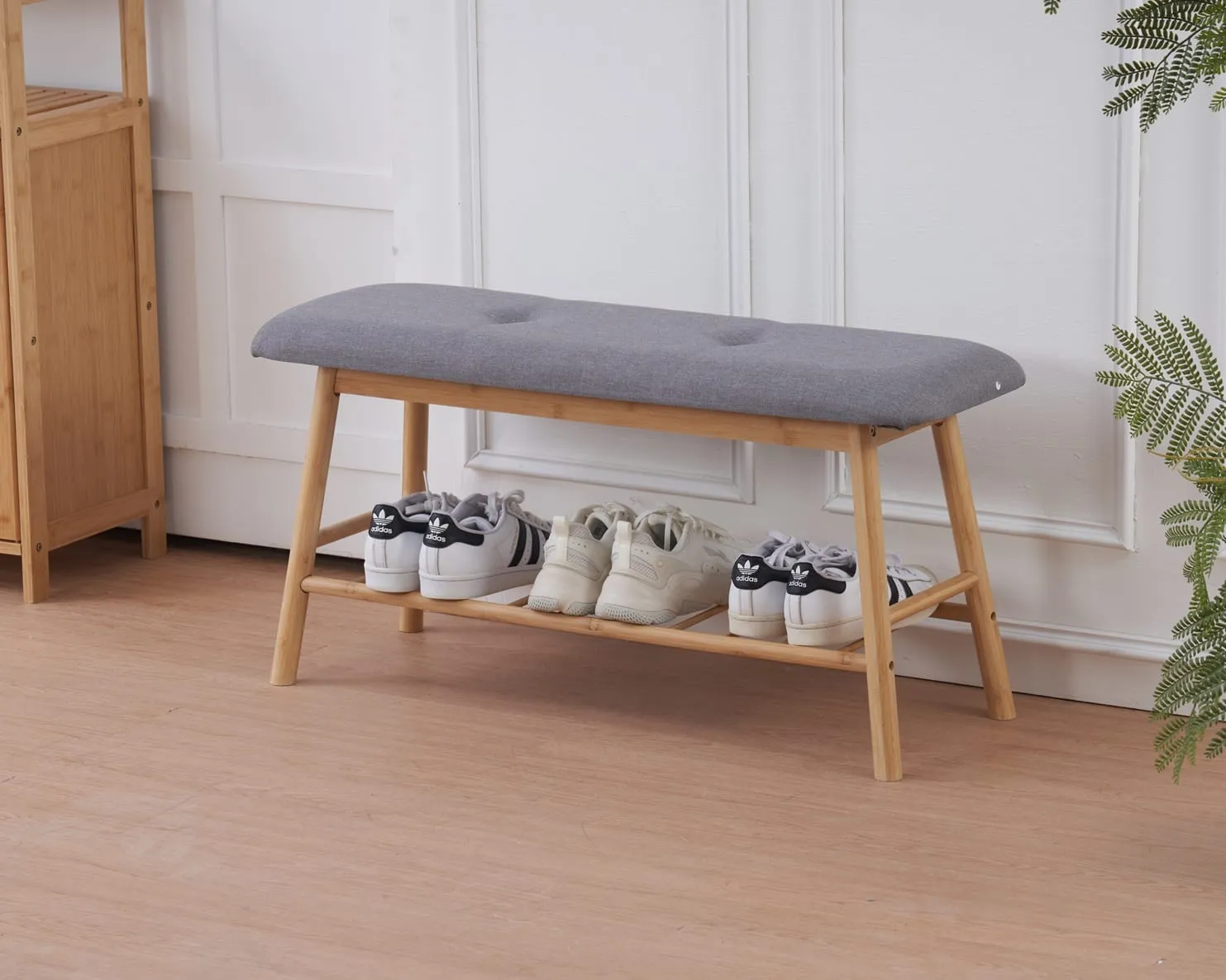 ספסל רב־תכליתי עם מושב עליון ומתלה נעליים תחתון