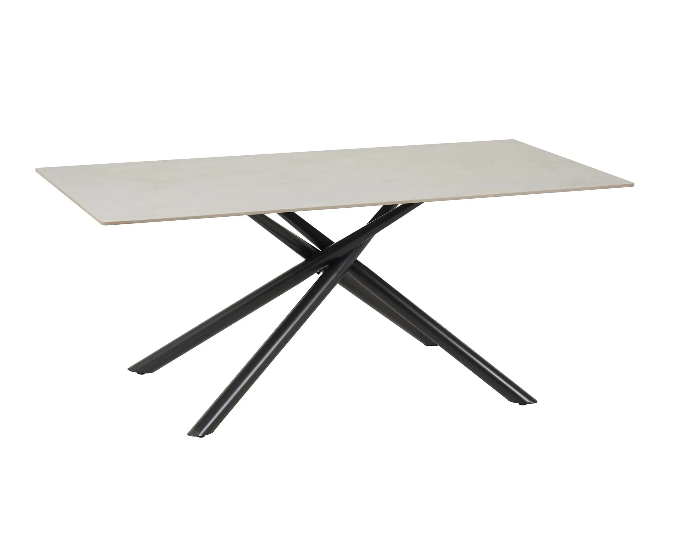 לשולחן ארבע רגלי מתכת שחורות בצביעה בתנור. הן עמידות בפני חלודה ותומכות במשקל כבד. בזכות מנגנון ההתכווננות, השולחן נשאר יציב גם על משטח לא אחיד.