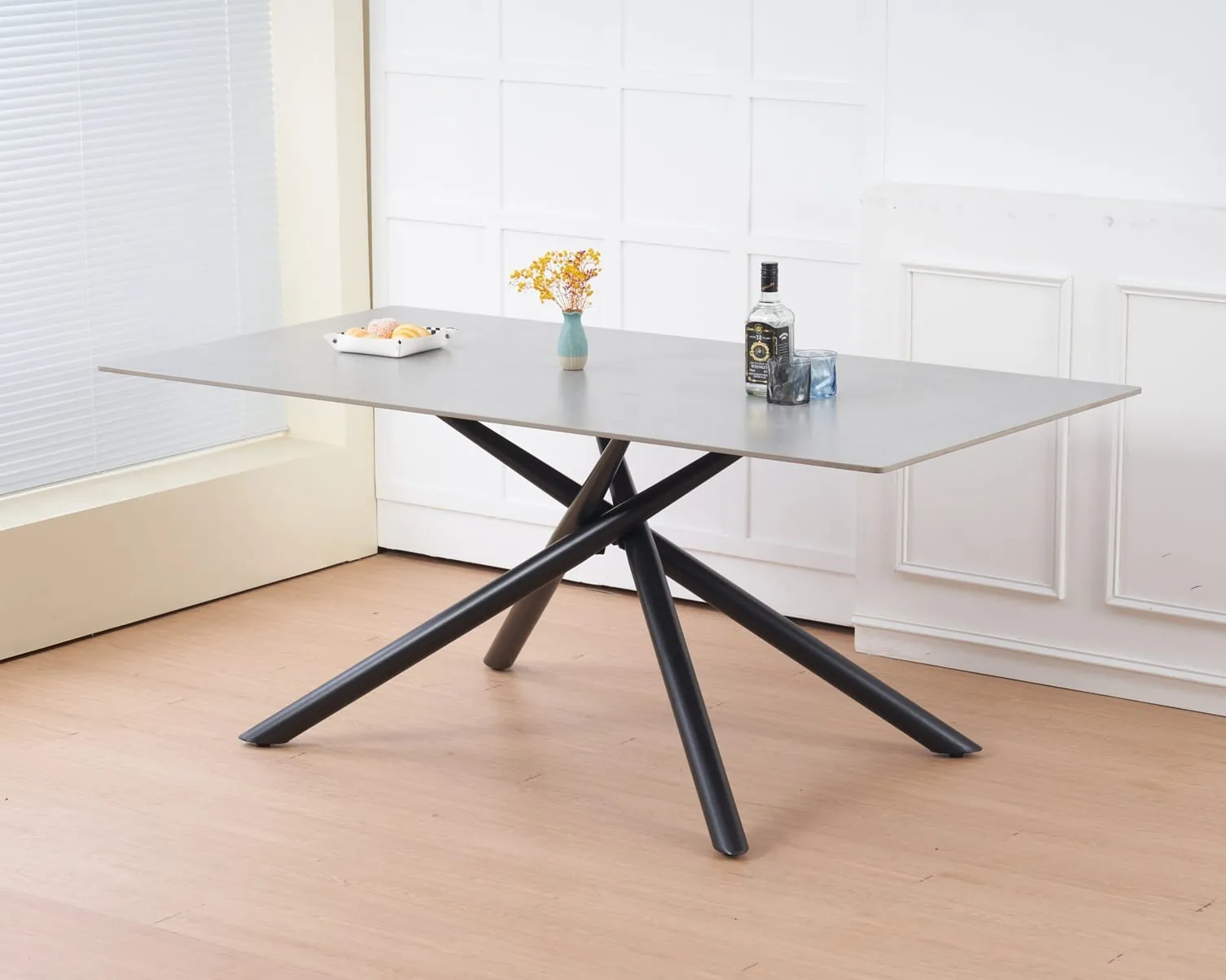 שולחן פינת אוכל מלבני דגם 814 בצבע אפור, משטח שיש סינטטי עמיד בעובי 12 מ"מ ורגלי מתכת יציבות. עיצוב יוקרתי, מתאים ל־6–8 סועדים.