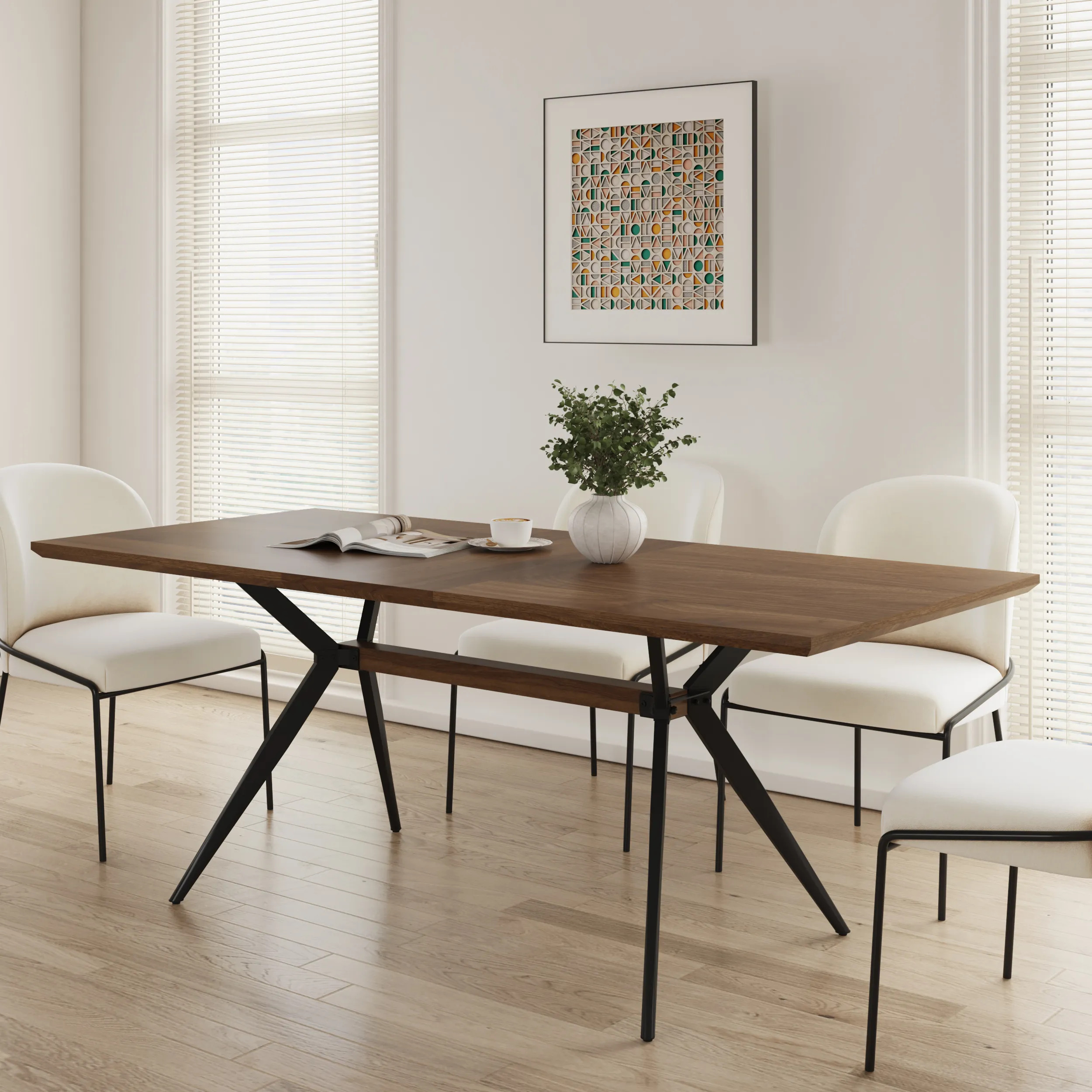 שולחן אוכל מלבני נפתח בגימור עץ אגוז
