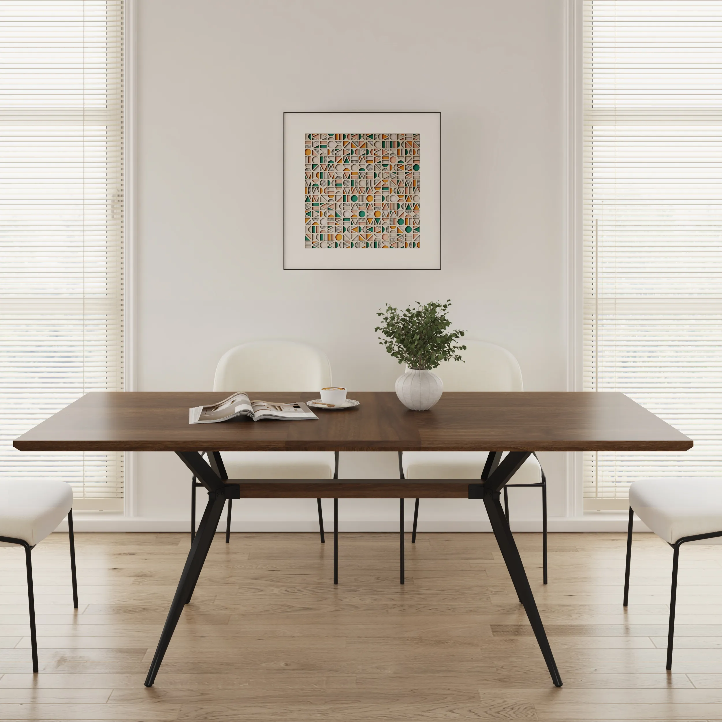 שולחן אוכל איכותי ומעוצב, עשוי עץ MDF חזק בגימור מלמין דמוי עץ אגוז במראה טבעי.
