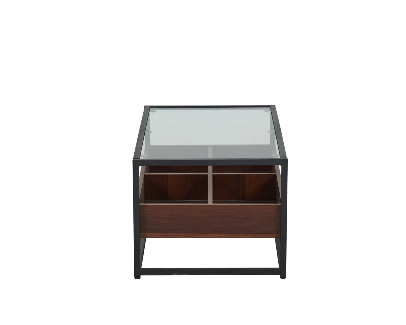 שולחן קפה מלבני דגם 5018 – עץ אגוז יוקרתי בשילוב זכוכית ומתכת