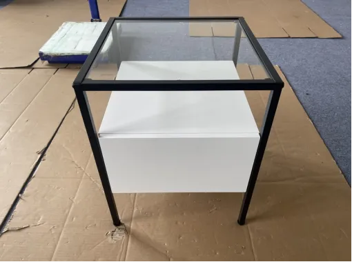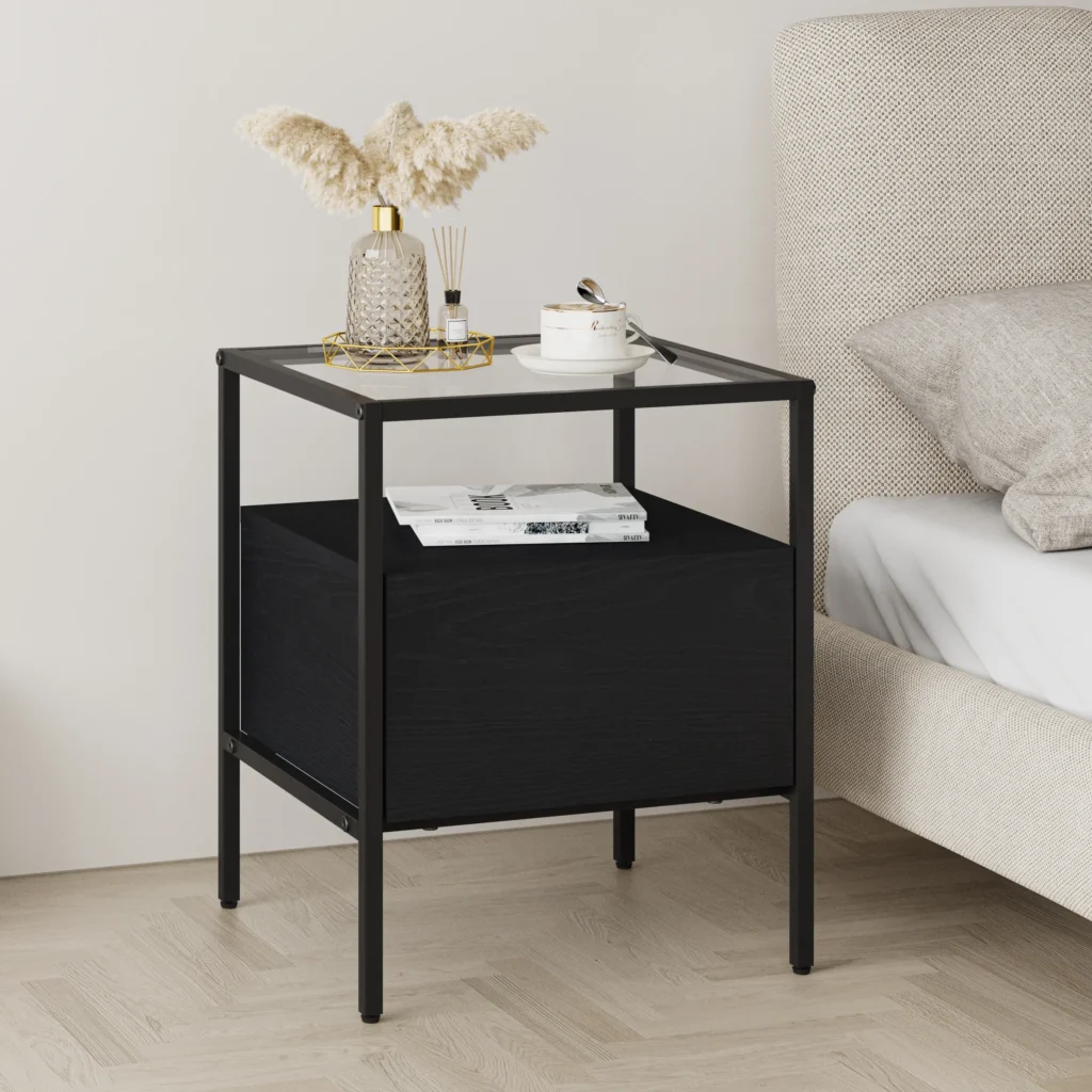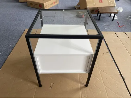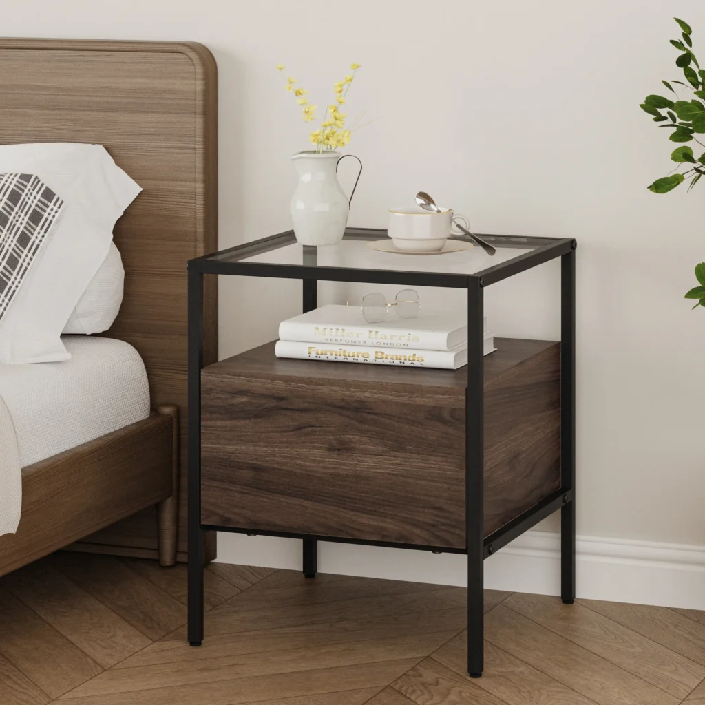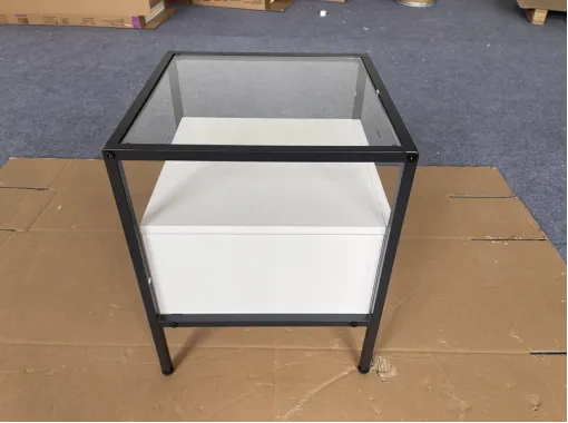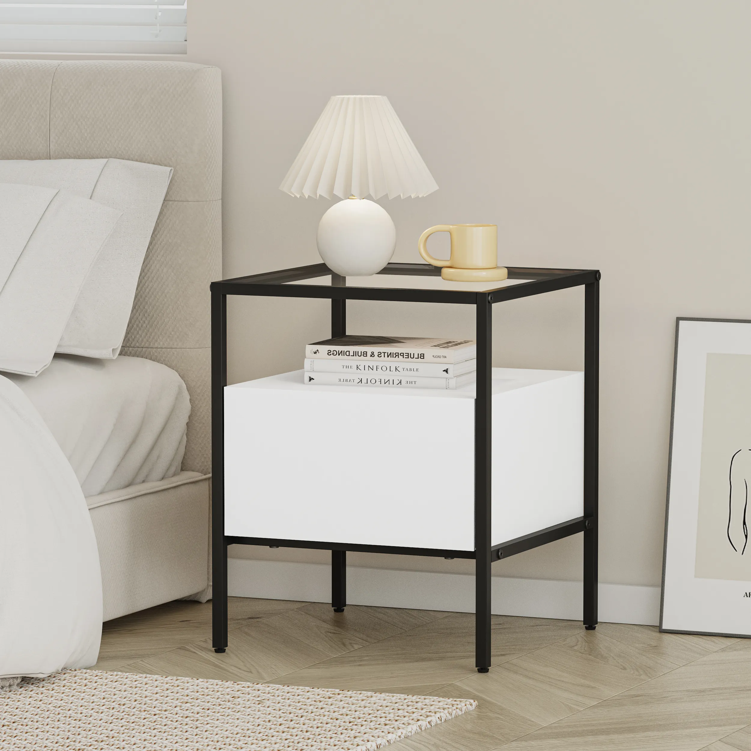 שידת לילה מעוצבת לצד המיטה בצבע לבן בשילוב זכוכית דגם 3284