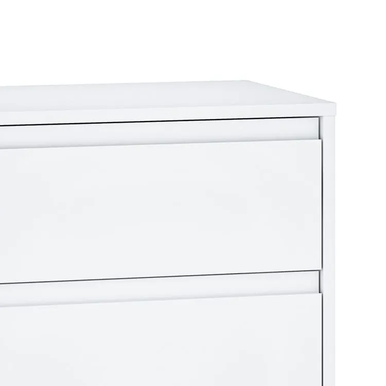השידה עשויה מ־פלטת MDF איכותית בציפוי PVC לבן חלק. MDF עדיף על סיבית או שבבי עץ, בזכות החוזק והעמידות הגבוהה שלו. כך השידה נשארת יציבה גם בשימוש ממושך. בנוסף, הציפוי הלבן מוסיף לה מראה אלגנטי, קל לניקוי ומתאים למגוון סגנונות עיצוב.
